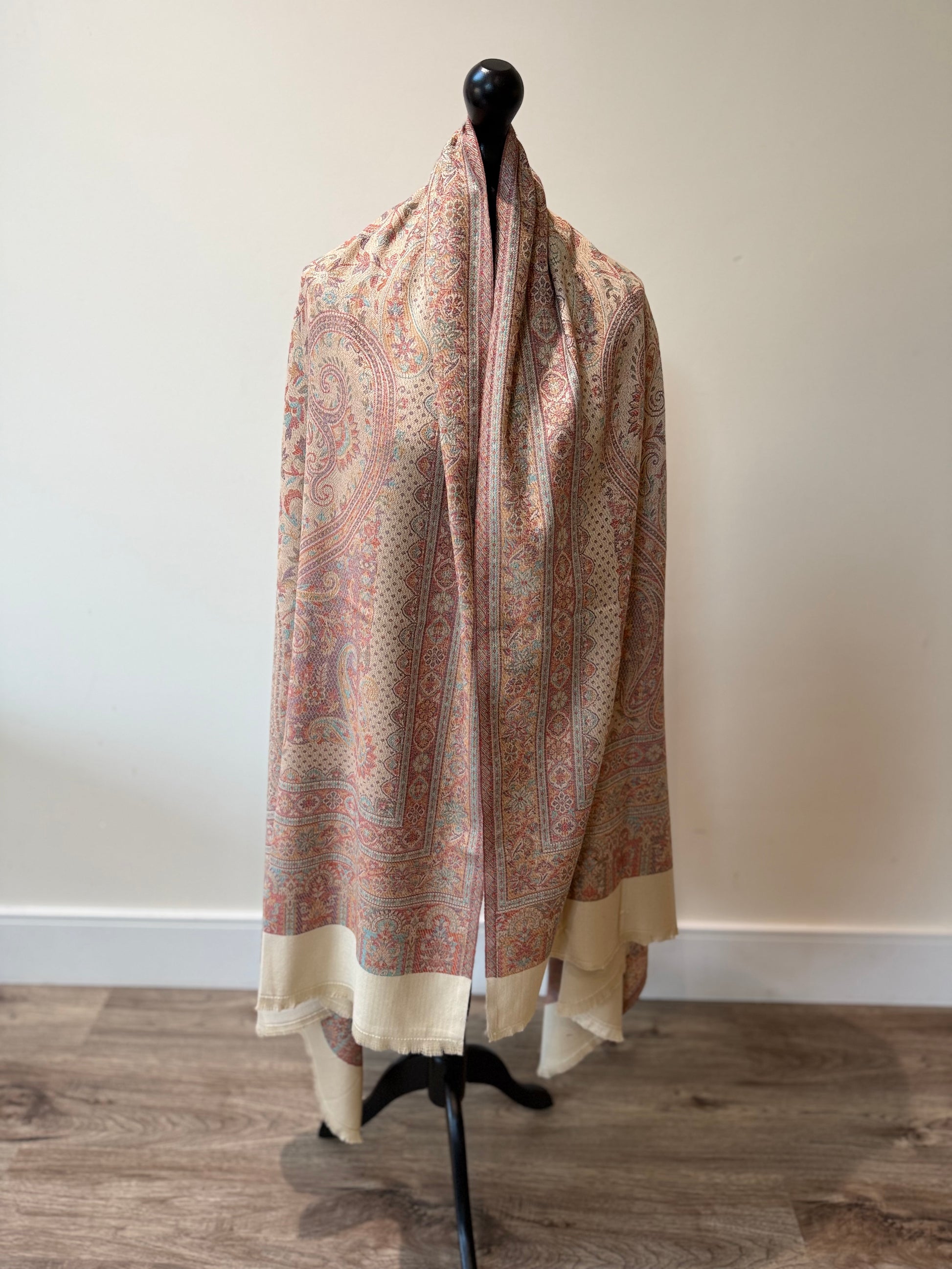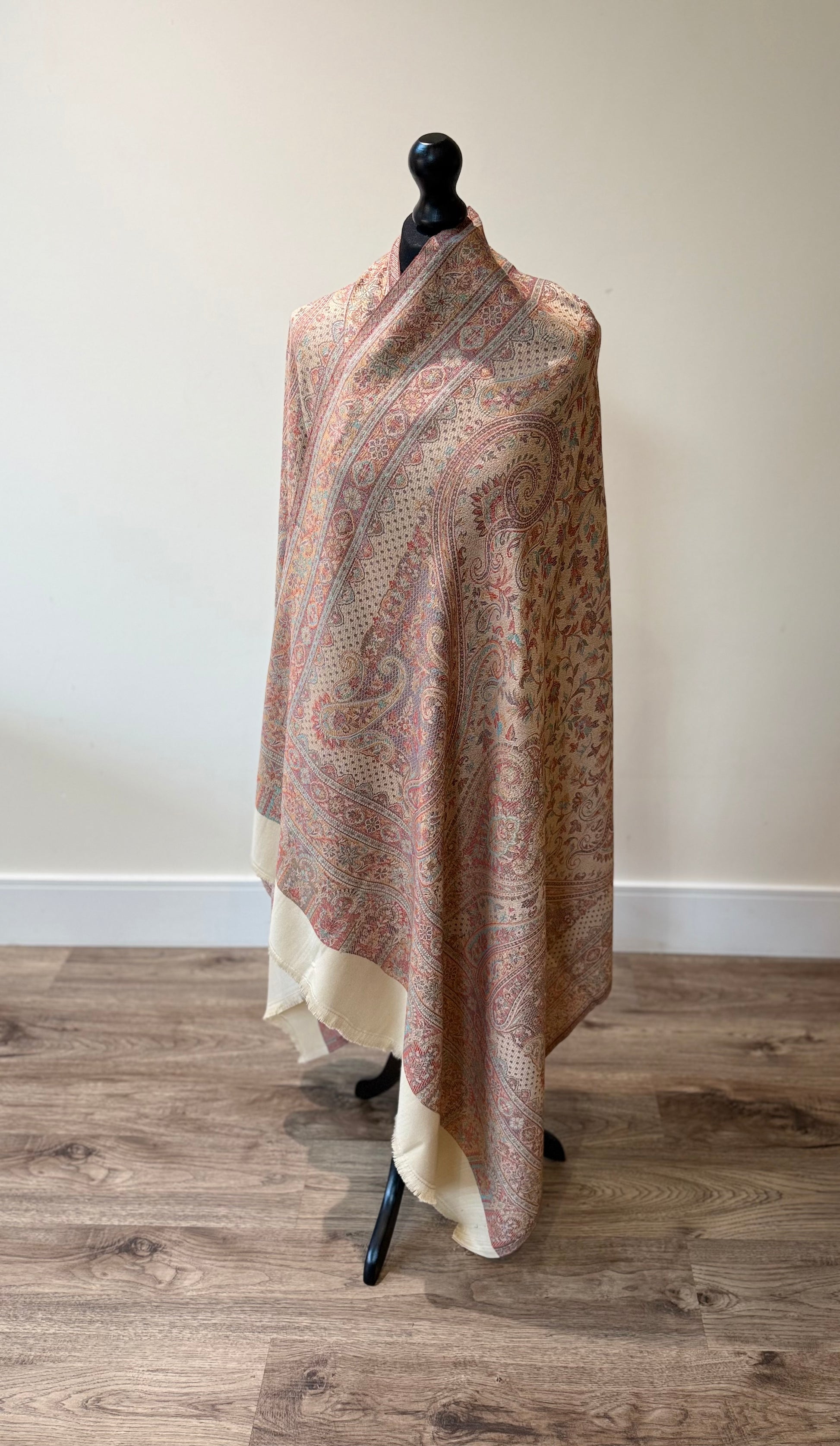 This beautiful semi pashmina Kani scarf oozes class and elegance , width 105 cm x 210 cm length