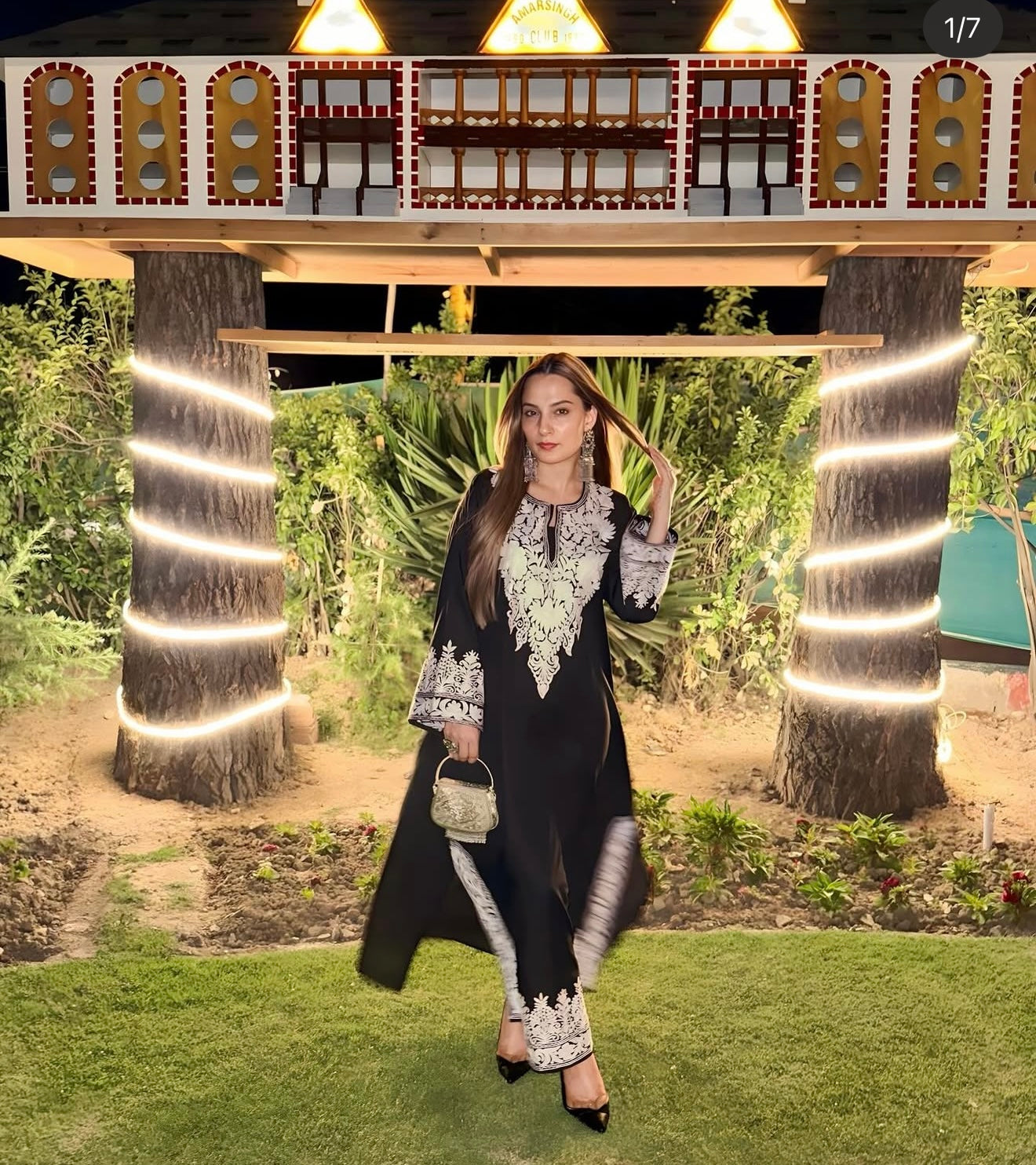 This cotton kaftan with heavy white aari work is stunning for summer.