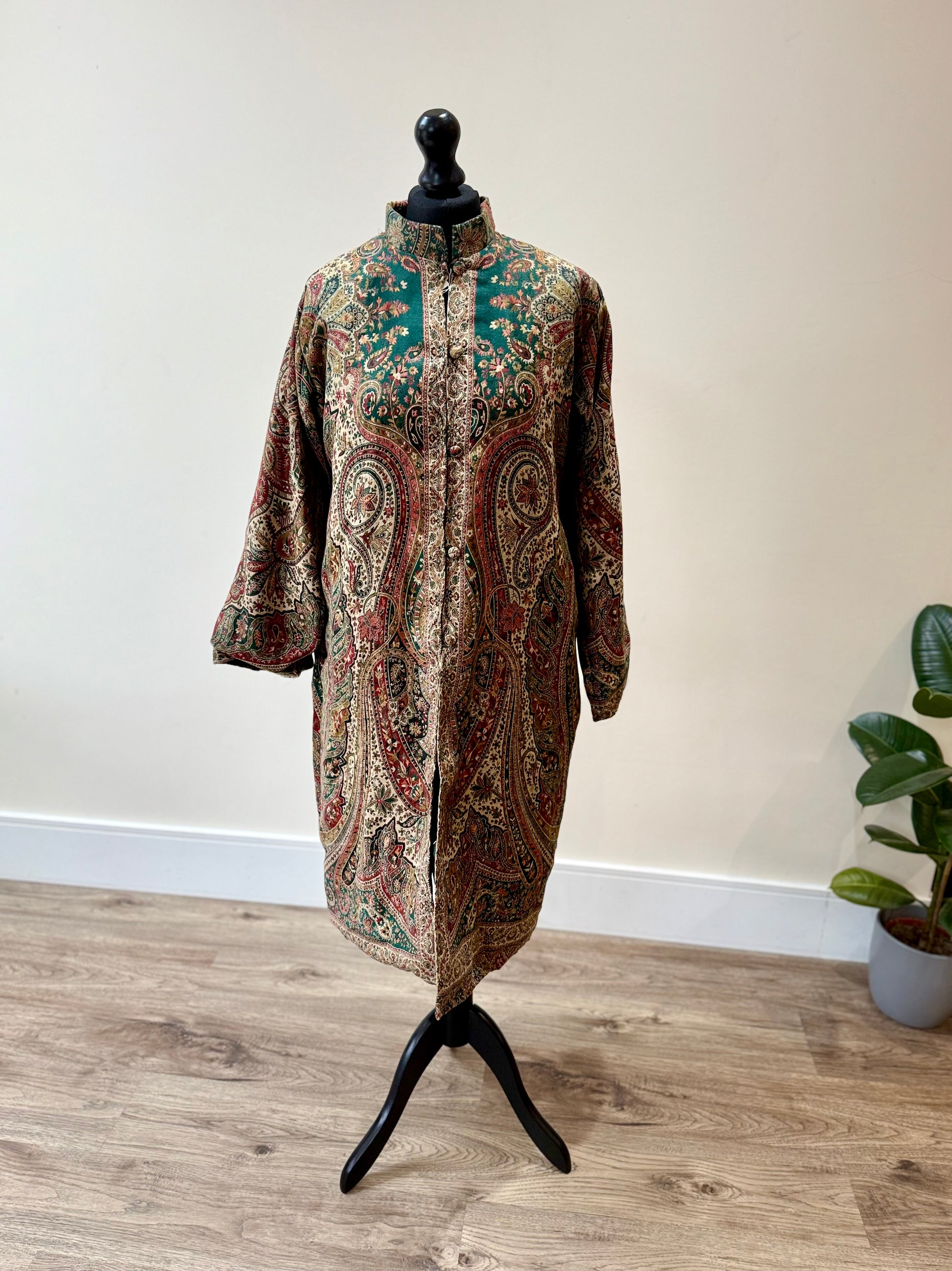 This woollen Kani printed Coat is an elegant and unique winter outfit , crafted in Kashmir
